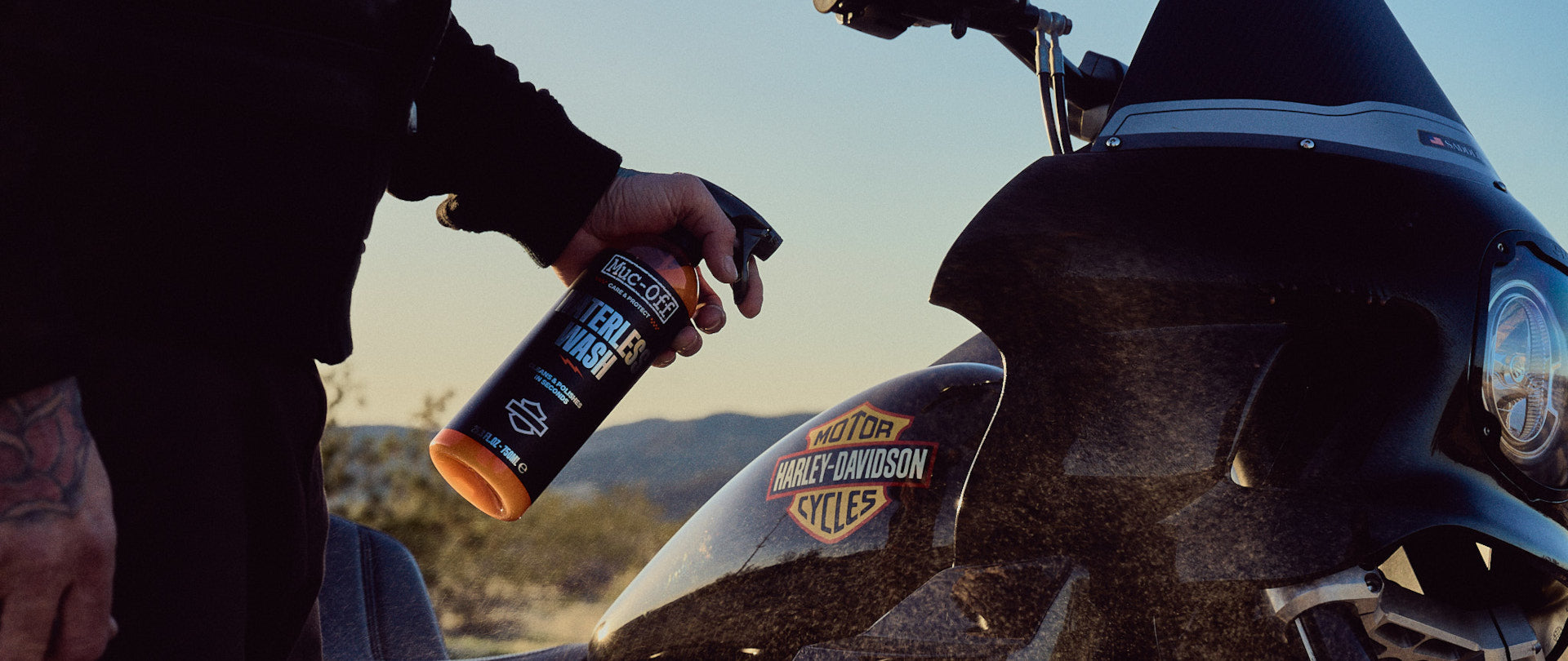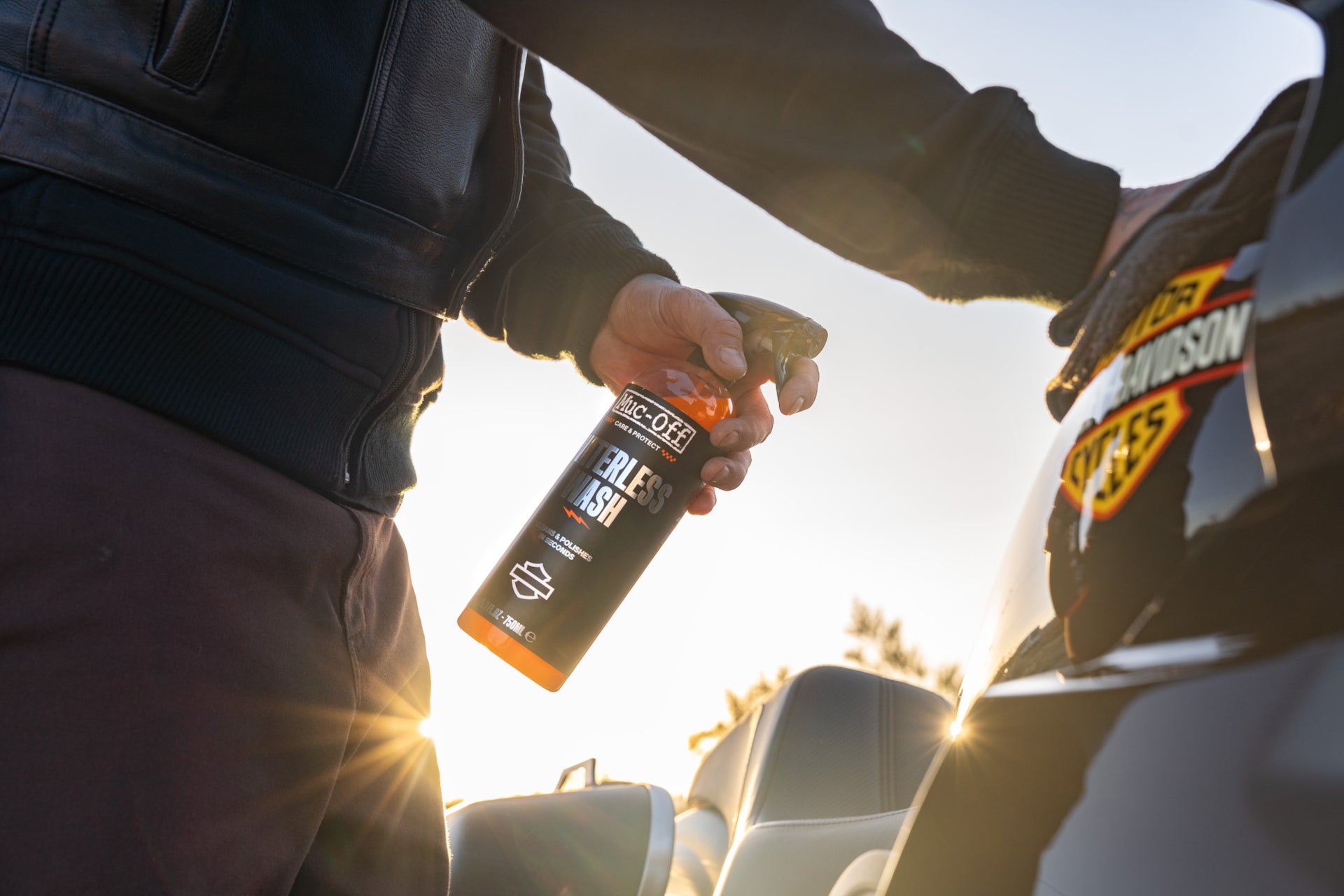 Sometimes you don’t need a full wash. Our Waterless Wash is the quick detailer that keeps your Harley® motorcycle turning heads between rides. Just spray, wipe, and watch the shine come back – no water required. The advanced formula locks away dirt to stop scratches, leaving a streak-free finish in minutes.