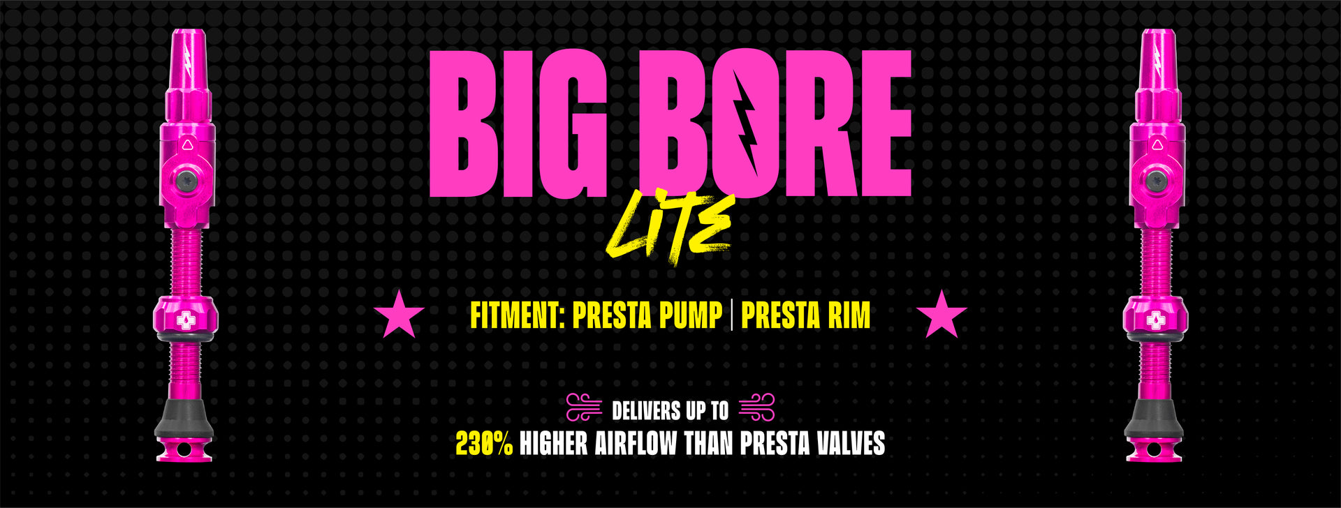 Nasze zawory Big Bore Lite oferują nawet o 230% większy przepływ powietrza niż tradycyjne zawory Presta dzięki konstrukcji z prostym przelotem.