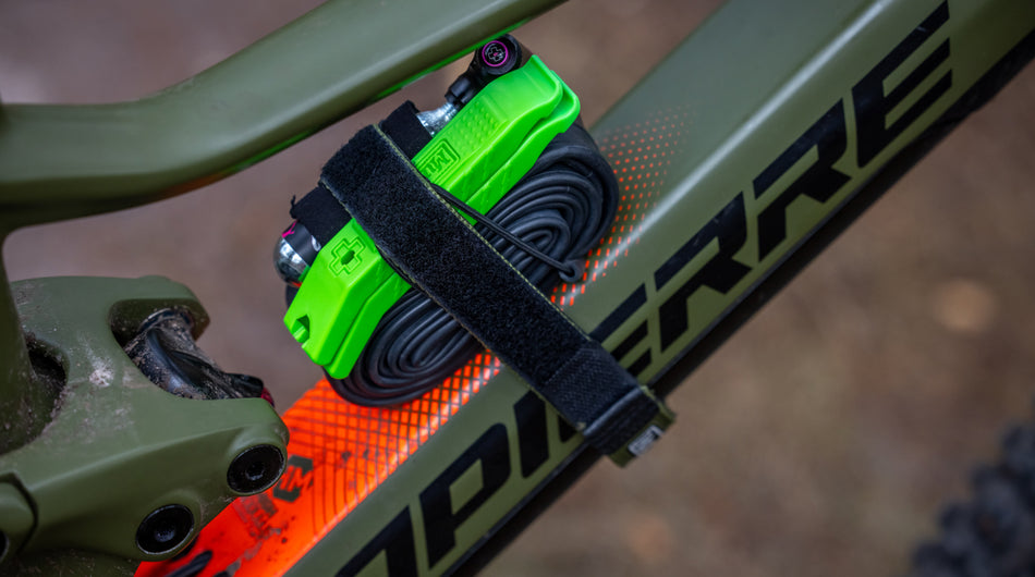 Don't let a puncture hold you back on a ride. Store all your riding essentials with the Muc-Off Utility Frame Strap. It's tough and durable, to wiithstanding the harshest conditions. Take a closer look as Chopper fixes a flat on the go with ease.