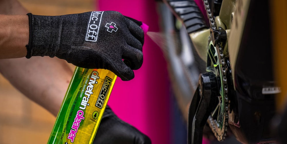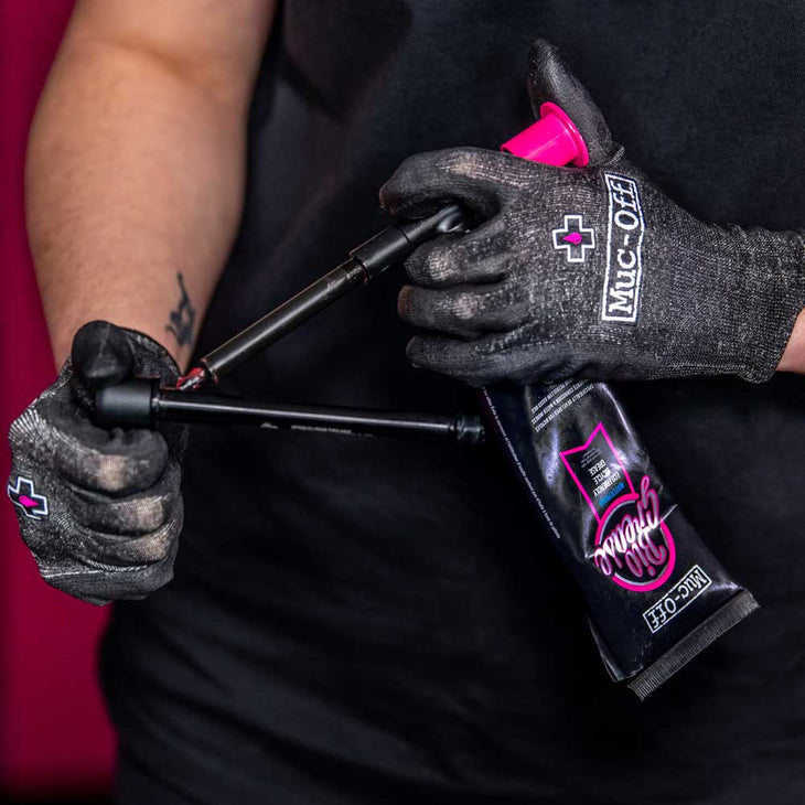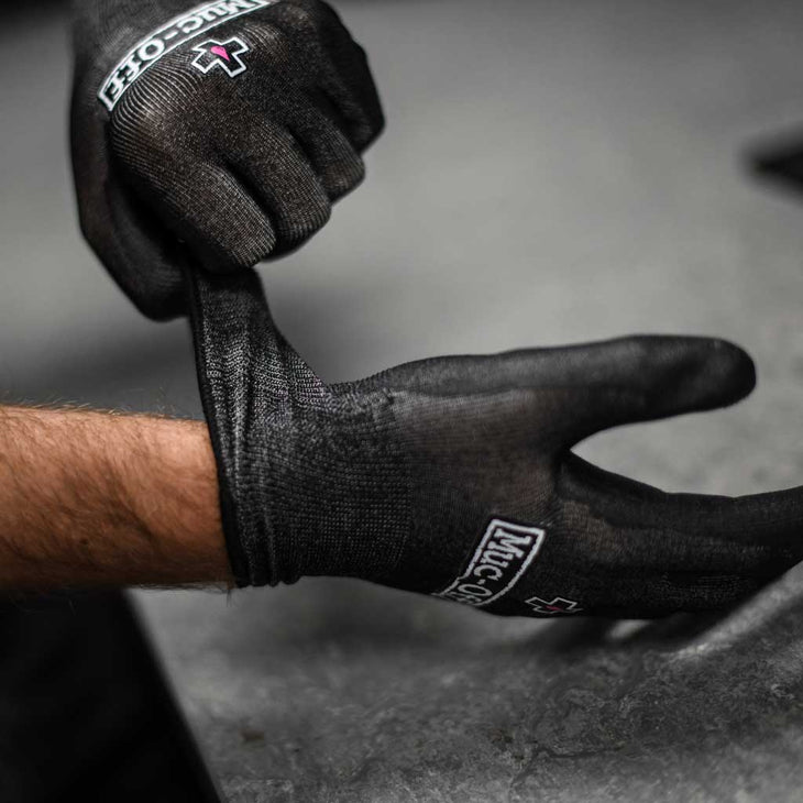 Many mechanics currently use single-use latex gloves when in the workshop but this is a hugely wasteful practice as latex rubber is not widely recyclable and most are not made of natural latex and therefore are not biodegradable. We calculate using data from our dealer network that each set of Muc-Off gloves could eliminate up to 200 sets of latex gloves which equates to 1kg of latex rubber being diverted from landfill for each set of Muc-Off mechanics gloves sold.