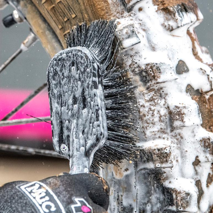 We’ve built our brushes to last! They’re made from compounds designed to be long-lasting while taking on the toughest grime, but they’re still kind to your bike’s delicate finishes. Simply wash them off and you’re ready to go again!